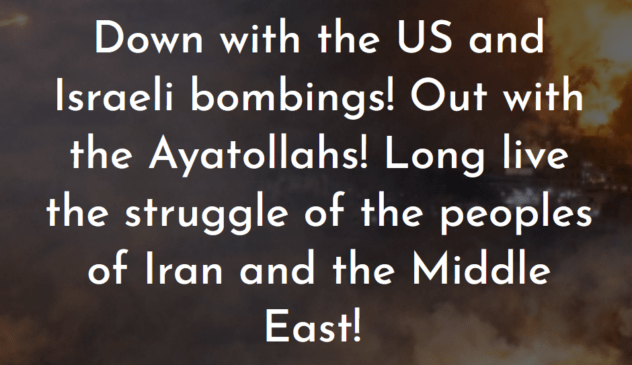 Down with the US and Israeli bombings! Out with the Ayatollahs! Long live the struggle of the peoples of Iran and the Middle East!