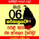 ජන මතයට හිස නමනු! ආණ්ඩුව ගෙදර යනු! May 3, 2022May 3, 2022 wisidagamage Post Views: 31 වෘත්තීය සමිති හා බහුජන සංවිධාන එකතුව
