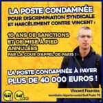 In the coming days, we will speak widely to our federations, UDs, trade unions, other unions, parties and associations, elected officials and public authorities so that this policy of union discrimination stops at La Poste. So that these thug methods stop. Congratulations to Vincent Fournier for not having given up in 10 years! They almost fired him, his determination allowed him to win this victory for all of us!