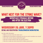 Troublemakers At Work is holding an online public meeting at 7:30pm on Wednesday 26 June.