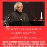Excerpted from the speech given by Wicramabahu Karunarathne at the funeral of comrade Sucharitha Gamlath