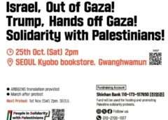 Trump, the world’s greatest imperialist, is coming to Korea. He is the enemy of the working class and oppressed people around the world. Trump has consistently supported Israel’s genocide of Palestinians in pursuit of Middle Eastern hegemony. Netanyahu praised Trump as “the greatest American president ever.” Trump has called for a ceasefire in the Ukraine War, but he continues to wage an imperialist proxy war against Russia, recently weighing the provision of Tomahawk long-range cruise missiles to Ukraine. The hegemonic rivalry with China, which intensified during Trump’s first term, has…