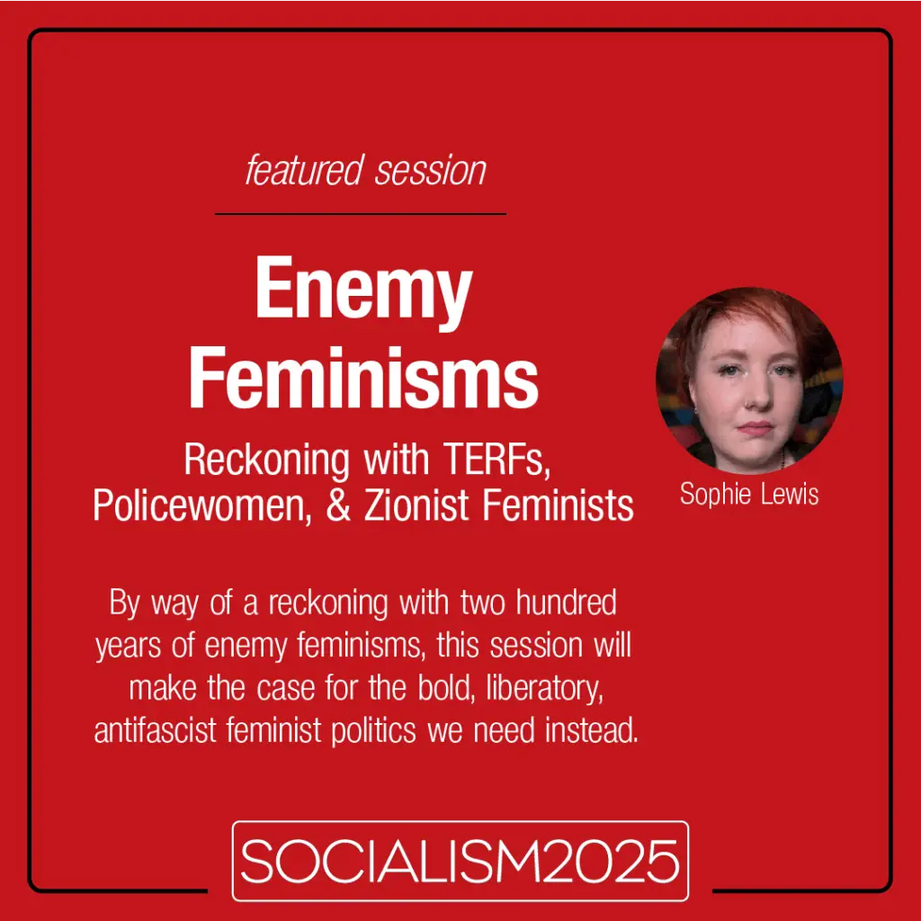 | Join us in Chicago for a four day conference of socialist politics, education, and community. July 3-6, 2025 Join Sophie Lewis for an unflinching tour of two hundred years of enemy feminisms—from 19th century imperial feminists and police officers to 20th century KKK feminists and pornophobes to today’s anti-abortion, TERF, and Zionist feminists. By way of a reckoning with these counterproductive, violent feminisms, this session will make the case for the bold, liberatory, antifascist feminist politics we need instead. Don’t miss it! Register for Socialism 2025 today! Register for Socialism 2025 by April 25! The far right ascends around the globe amid war and wildfires. The coming period promises more and deeper crises, but also to ignite mass social movements with increasing frequency. It is a crucial time for the left to come together and build durable organizations, coalitions, and relationships. At this critical juncture, Socialism 2025 will be a vital gathering space for organizers, activists, and radical thinkers. Additional featured speakers at Socialism 2025 will include: Boots Riley, Robin D.G. Kelley, Harsha Walia, Dean Spade, Eve L. Ewing, Kim TallBear, Omar Barghouti, Sarah Schulman, Kali Akuno, Lorgia García Peña, Chenjerai Kumanyika, Daniel Denvir, Richard Seymour, Adom Getachew, Jesse Hagopian, Eric Blanc, Glen Coulthard, Micha Frazer-Carroll, Paisley Currah, Mikaela Loach, and many more. Early Bird Rate: Register for Socialism 2025 by April 25 for a discounted rate! Register for Socialism 2025 by April 25! Please note: Haymarket Books is committed to making the Socialism Conference as affordable as possible, and for that reason we are keeping registration prices as low as is feasible. However, the conference costs hundreds of thousands of dollars each year, and is funded almost entirely by registration revenue. If you can afford to purchase a higher tier ticket or make an additional donation, please do so! We depend on your solidarity to sustain the conference and provide scholarships for those who need them. |