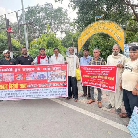काकोरी शहीद यादगार कमेटी (क्रालोस, इमके, यू पी के एम यू, मजदूर मण्डल उप्र, बी टी यू एफ, पछास, क्रान्तिकारी किसान मंच, प्रगतिशील सांस्कृतिक मंच, ए आई एल यू, पी यू सी एल, आटो रिक्शा टैम्पो चालक वैलफेयर एसोसिएशन) के तत्वाधान में सेठ दामोदर स्वरुप पार्क (स्वतन्त्रता संग्राम सेनानी) से बहुराष्ट्रीय निगमों के इशारों पर नाचने वाली भाजपा सरकार की किसान, मजदूर, छात्र-नौजवान, महिला, दलित, अल्पसंख्यक, आदिवासी विरोधी व कारपोरेट परस्त नीतियों के खिलाफ ‘कारपोरेट भारत छोड़ो’ की मांग को लेकर ‘साम्राज्यवाद विरोधी मार्च’ निकाला गया। जुलूस सेठ दामोदर स्वरुप पार्क से अय्यूब खां चौराहे तक गया। तत्पश्चात साम्राज्यवादी सरगना अमेरिकी साम्राज्यवाद के मुखिया ट्रंप का पुतला दहन किया गया।