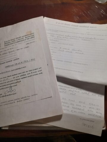 මට එතනදිත් හෝමාගම පොලිසියේදී වගේම සිද්ධියකටයි මුහුණදීමට සිද්ධ වුණේ.මතක විදියට එතන හිටපු නිලධාරියා සමගි පෙරේරා කියලා කෙනෙක්. එයා කිව්වා මේ අතුරුදහන් වෙච්ච මිනිස්සු ගැන මානව හිමිකම් කොමිසමේ පැමිණිලි කරන්න බැහැ කියලා. ඒ ගැන මම නම් කිසිම දෙයක් දැනගෙන හිටියේ නැහැ. ඒත් මාත් එක්ක ගිය ඒ නීතිඥවරිය නම් එහි  නීතිමය තත්ත්වය ගැන ඒ නිළධාරියත් එක්ක ටික වේලාවක් තර් ක කළා.මම තුෂ්නීම්බූතව ඔහේ බලාගෙන හිටියා. අවසානයේදී  එම නිලධාරියා අපිට ෆෝම් එකක් දීලා ආ මේක පුරවලා දීලා යන්නකියලා අමනාපය, අසමගිය මුසු මුහුණකින් අපට කිව්ව.  ඒ පෝරමය පුරවල ඒ නිලධාරියාටම බාර දීල  අපි එතනින් ආවා. මතක විදියට ඒ සිද්ධිය ගැන සඳරුවන් ඊ නිවුස් එකේ ලියල තිබුණ.