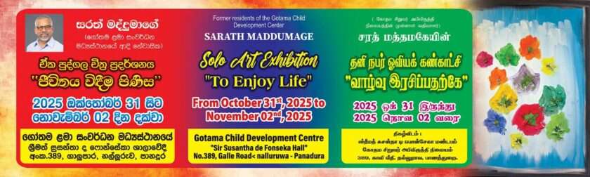 But his homeland is Sri Lanka. He has come to us with the expectation and vision he has for his homeland and the land where he grew up. His art exhibition is coming to his motherland from six places including Switzerland and Nepal in order to express his gratitude to the Gothama Children’s Home where he grew up and to encourage other resident children.