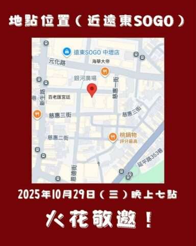 合辦單位:桃園市產業總工會、火花、台灣國際勞工協會、工傷協會、桃園市好生活協會(更多單位陸續邀請中)