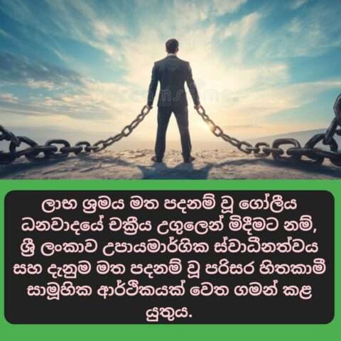 ශ්රී ලංකාවට ලාභ ශ්රමය මත පදනම් වූ ආර්ථික ආකර්ෂණයක් පවත්වා ගත නොහැක. අපගේ උපාය මාර්ගය විය යුත්තේ මෙම ගෝලීය සූරාකෑමේ චක්රයෙන් මුළුමනින්ම මිදී, පහත සඳහන් කරුණු මත පදනම් වූ නව ආර්ථික රාමුවක් ගොඩනැගීමයි.